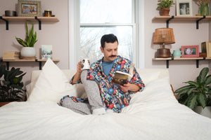 We use a soft, high-quality polyester that has the look and feel of breathable cotton. Versatile, lightweight, and soft to the touch, our robes make cozy gifts.