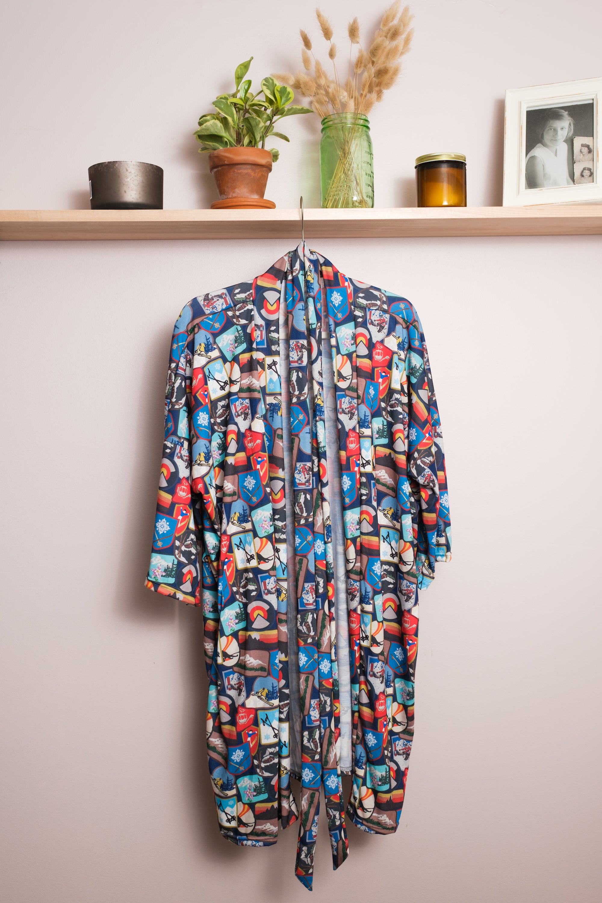Our soft knit unisex robes are lightweight and designed to be casual and flattering with three quarter length sleeves and a kimono-style body with an open front and waist belt closure.