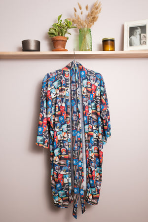 Ultra comfortable and flattering three quarter sleeve kimono style robe.