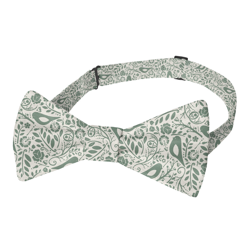 The ornate vine, leaf, and bird design on these ties reminds us of fairy tales and classic Dutch folk art. Whimsical and romantic, the Vonnie pattern makes wonderful wedding bow ties, especially for vintage or boho ceremonies. The two-tone woodland pattern can be customized to match your color scheme.