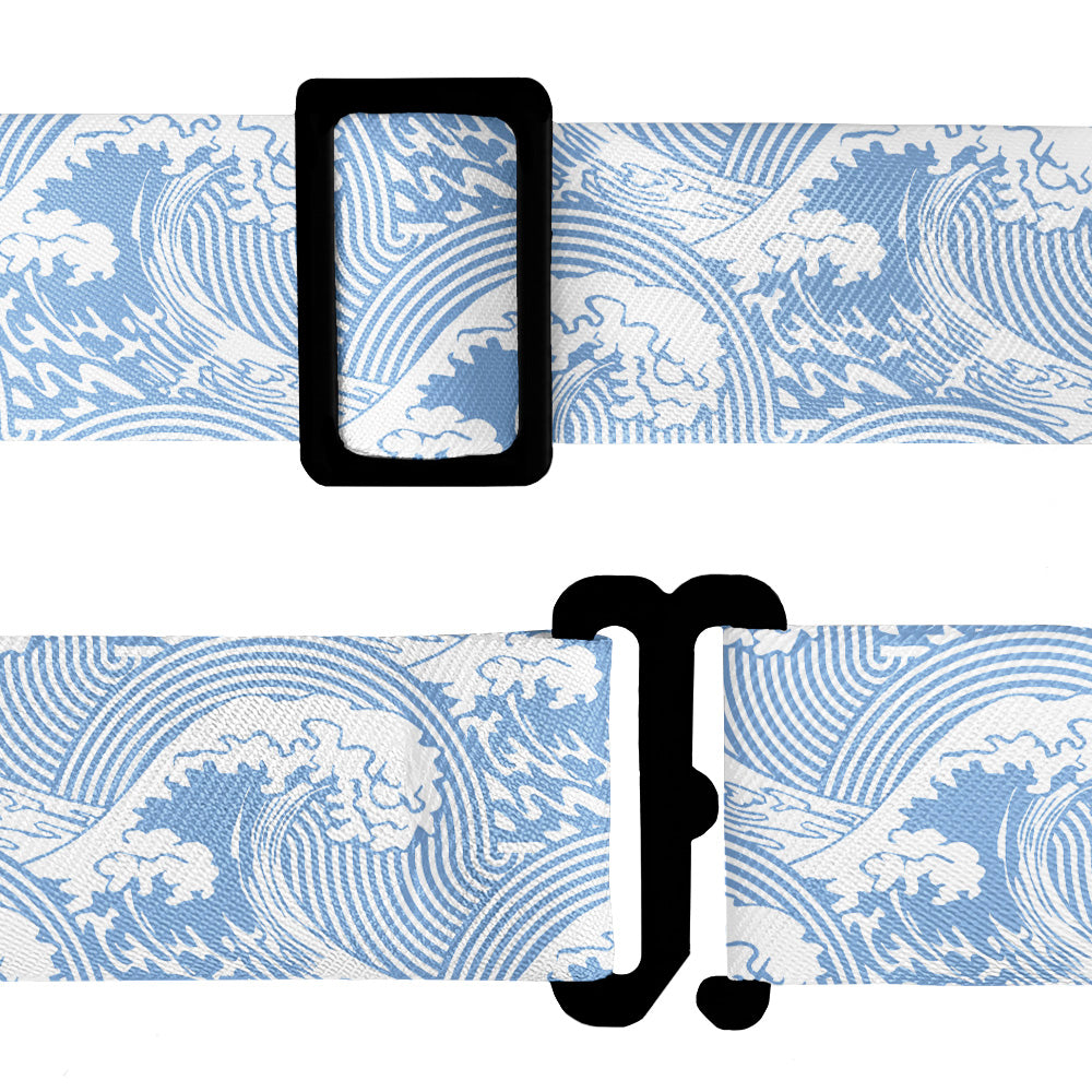 Inspired by Japanese woodcuts, the flowing lines of this nautical bow tie evoke a sense of serenity. The repeating wave motif reminds us that the tides continue to ebb and flow despite the clamor of our daily concerns.