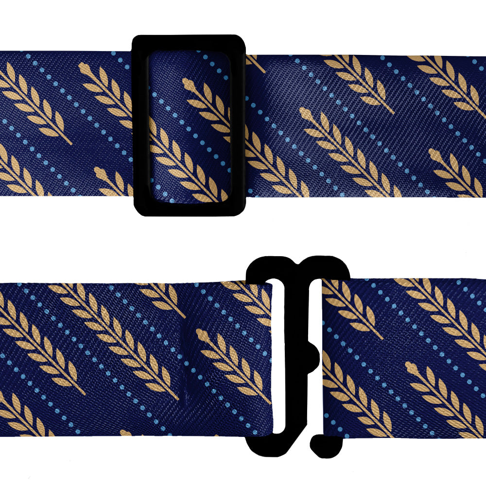 Each eco-friendly bow tie is printed on demand using recycled fabric. That minimizes their environmental impact, while also making them easy to customize. You can match these harvest-themed groomsmen ties to your wedding colors. The Wheat bow tie pairs well with a navy-colored blazer.