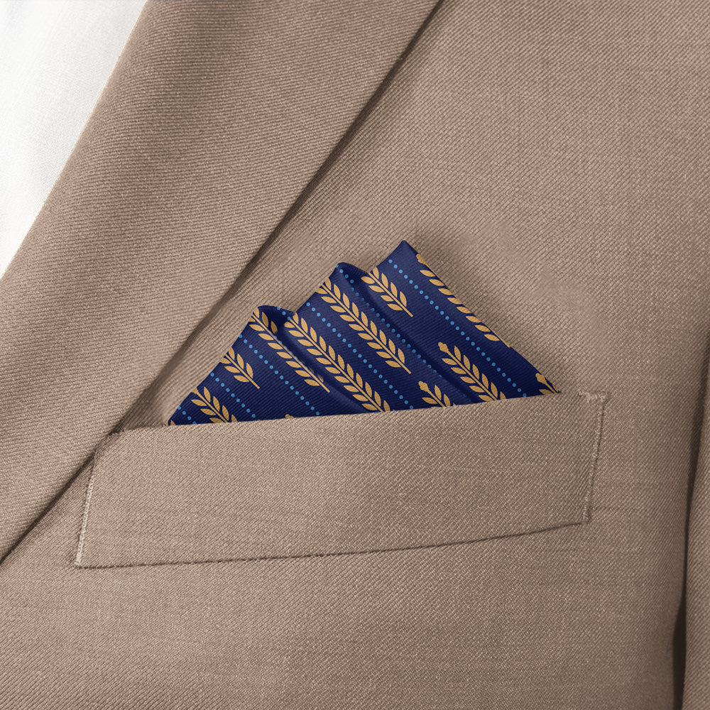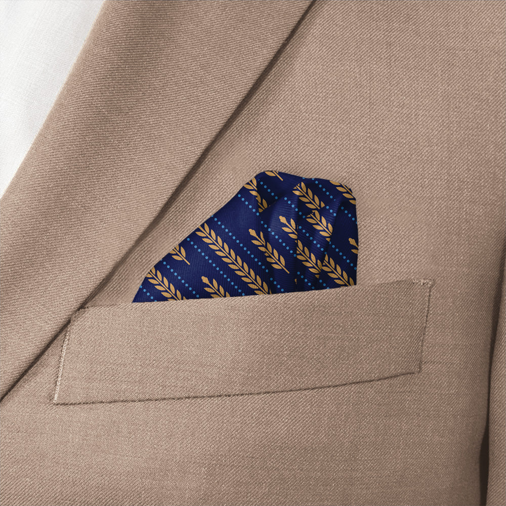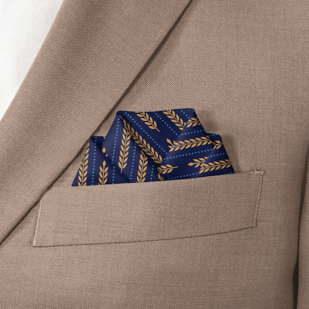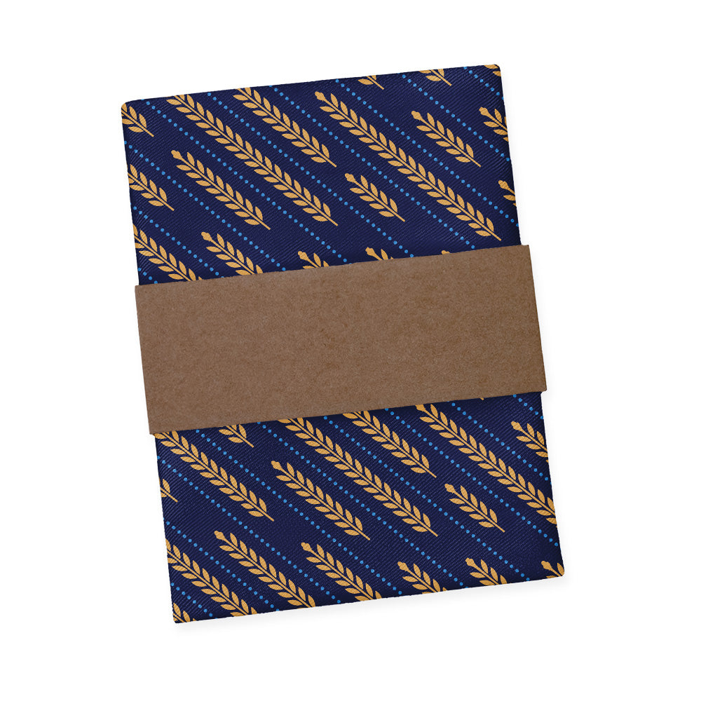 Each eco-friendly pocket square is printed on demand using recycled fabric. That minimizes their environmental impact, while also making them easy to customize. To play up the natural notes of the Wheat pocket square, try pairing it with a floral tie in the same colors. The organic patterns of our Dried Floral or Inflorescence neckties would nicely contrast these stripes.
