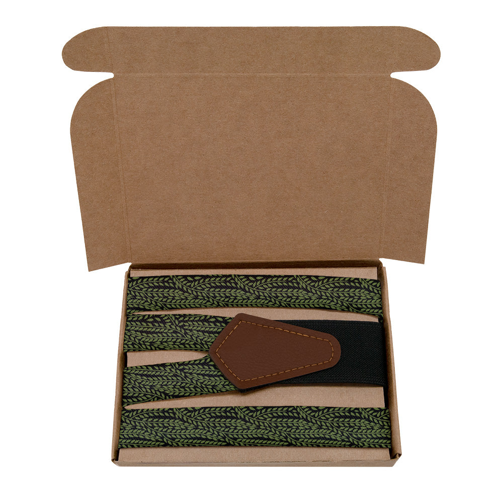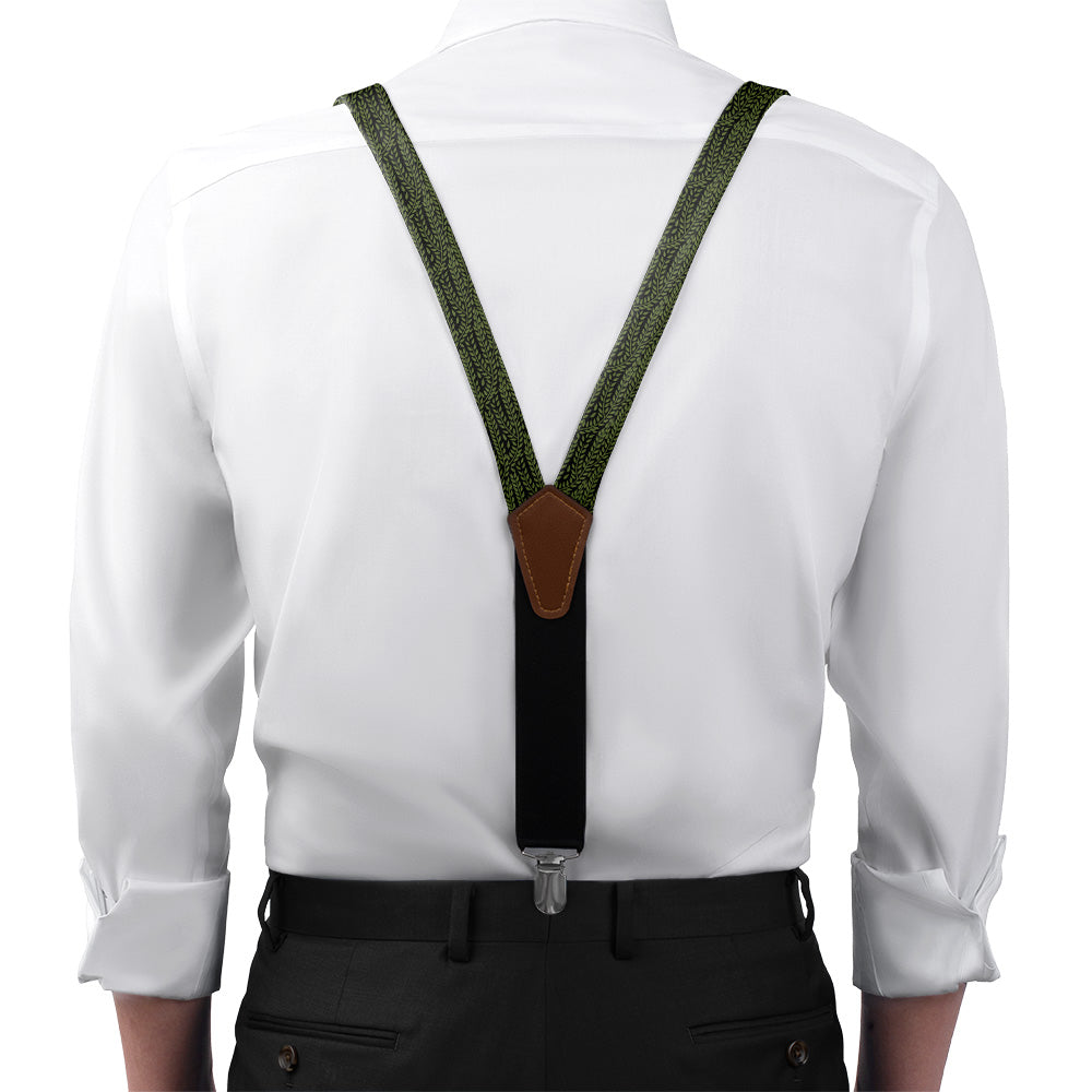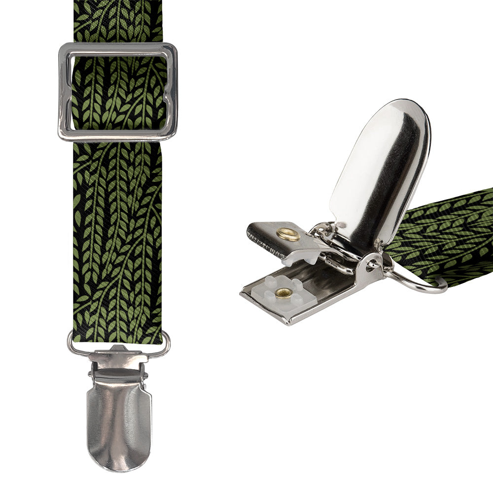 Sinuous willow fronds sway on this botanical suspenders. The elegant willow leaves on a simple background make the Willow suspenders a natural fit for formal occasions.