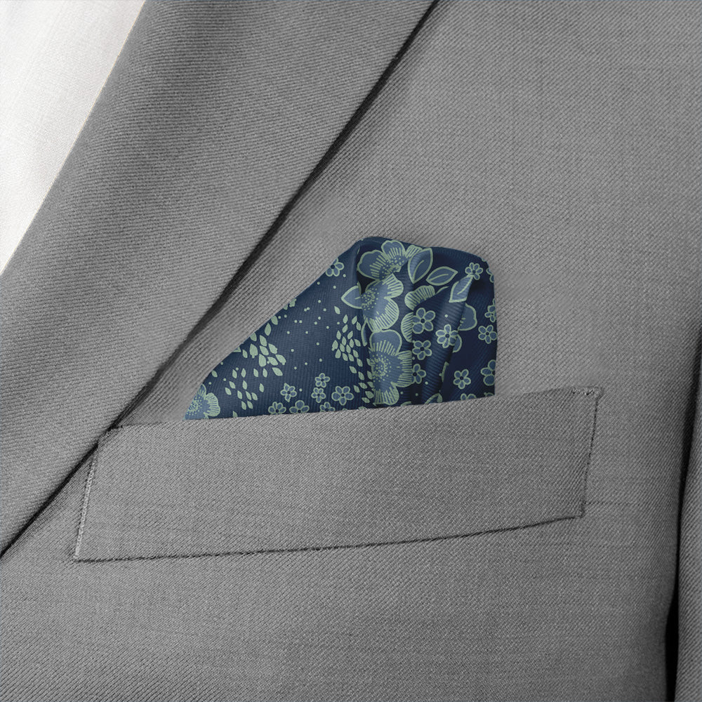 Scattered flowers and leaves shine like stars in the magical Woodland Floral pocket square. This fantastical floral pattern reminds us of a mid summer's night dream, so dream big and customize this pattern in the 3 colors of your choice!