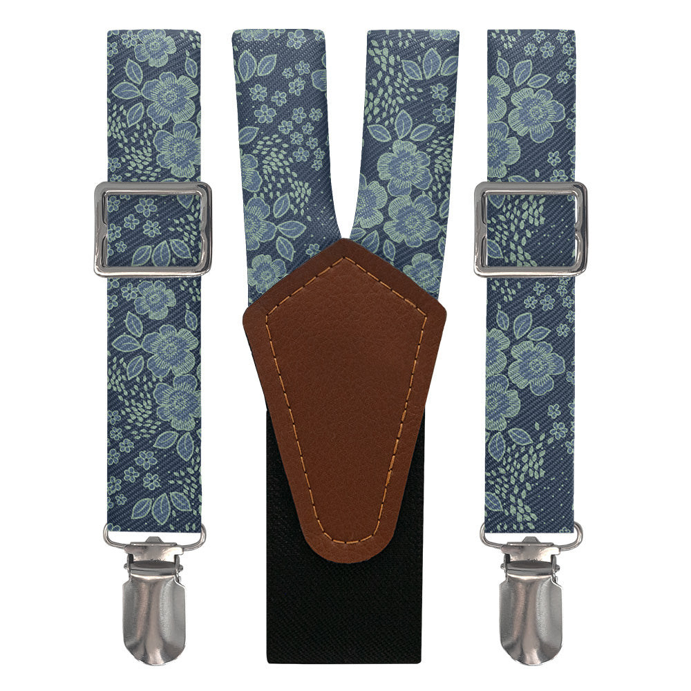 Printed fabric straps are 1-inch wide and secured to an elastic rear strap with vegan leather Y-back to allow the suspenders to move with you and extend as you bend. We use silver alligator pant clips that feature a special mechanism to ensure the suspenders clamp securely to pants.